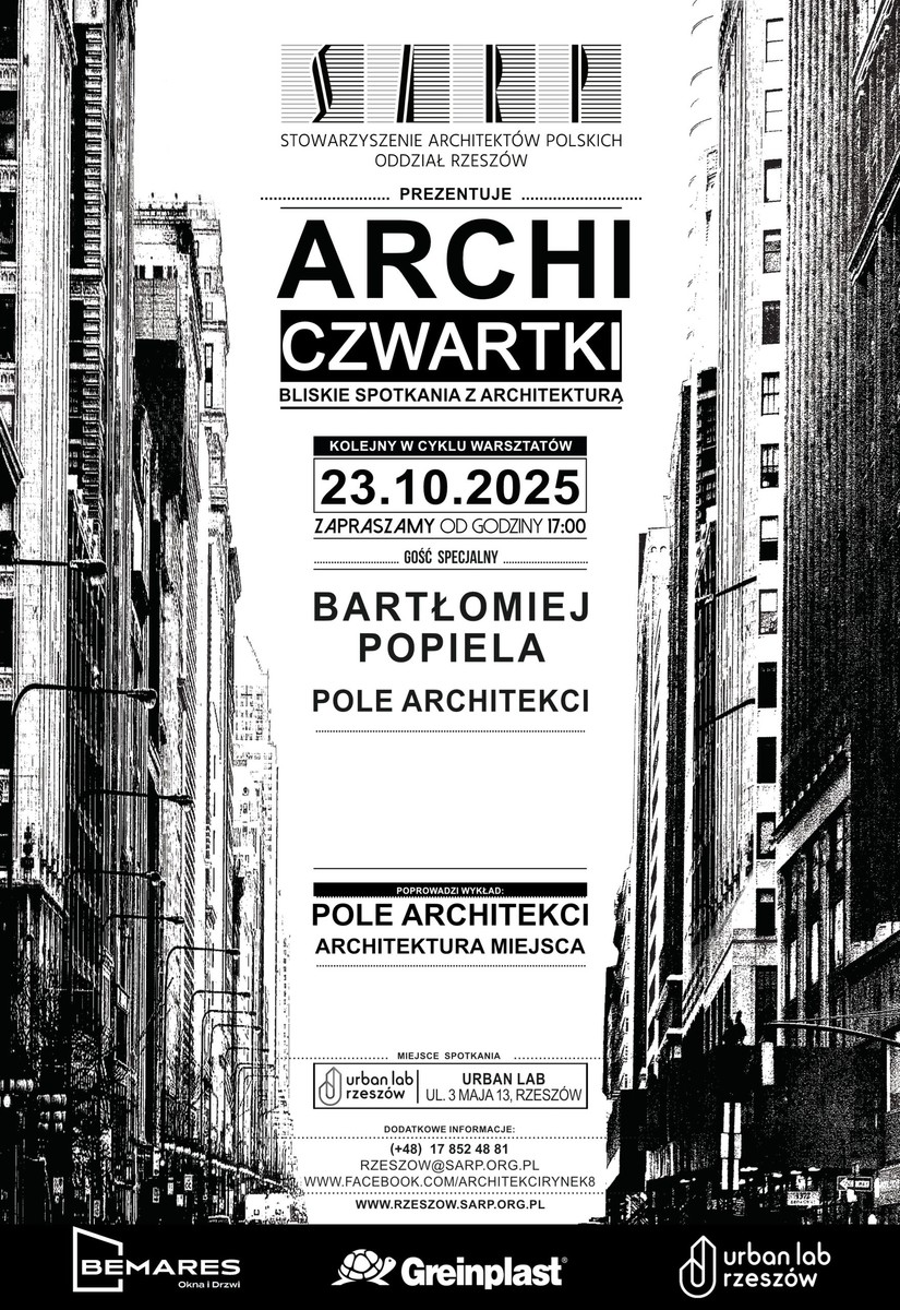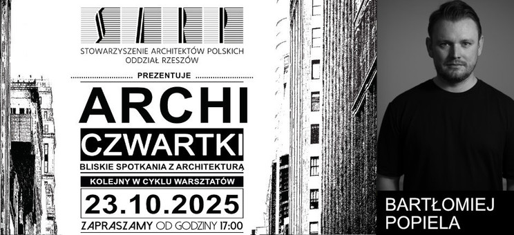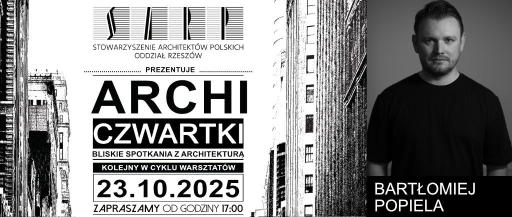 W imieniu SARP o. Rzeszów, w ramach bliskich spotkań z Architekturą „ARCHI – CZWARTKI” 23 października 2025, godz. 17.00 w URBAN LAB przy ul. 3-go Maja 13 w Rzeszowie zapraszamy serdecznie na prelekcję: