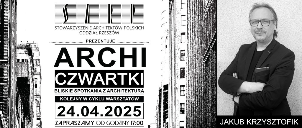 W imieniu SARP o. Rzeszów, w ramach bliskich spotkań z Architekturą „ARCHI – CZWARTKI” 24 kwietnia 2025, godz. 17.00 w URBAN LAB przy ul. 3-go Maja 13 w Rzeszowie zapraszamy serdecznie na prelekcję: