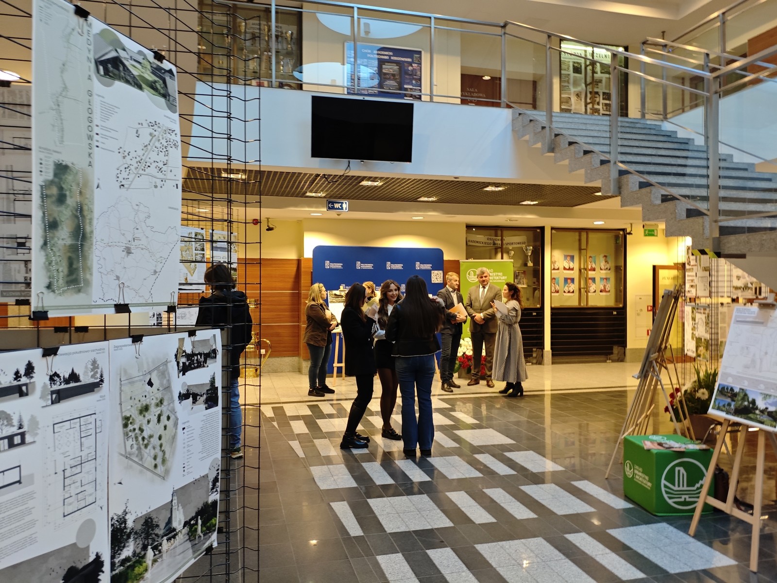 W dniu 26 listopada w holu głównym budynku V odbyła się uroczystość otwarcia wystawy wraz z ogłoszeniem werdyktu i wręczeniem nagród za najlepsze prace studentów wykonywanych w ramach przedmiotu “Zrównoważone projektowanie w architekturze i urbanistyce”. Koordynatorką przedmiotu jest mgr inż. arch. Natalia Ludwikowska.