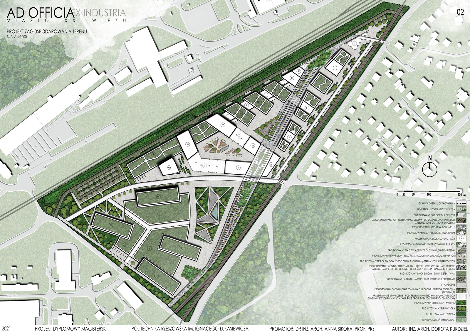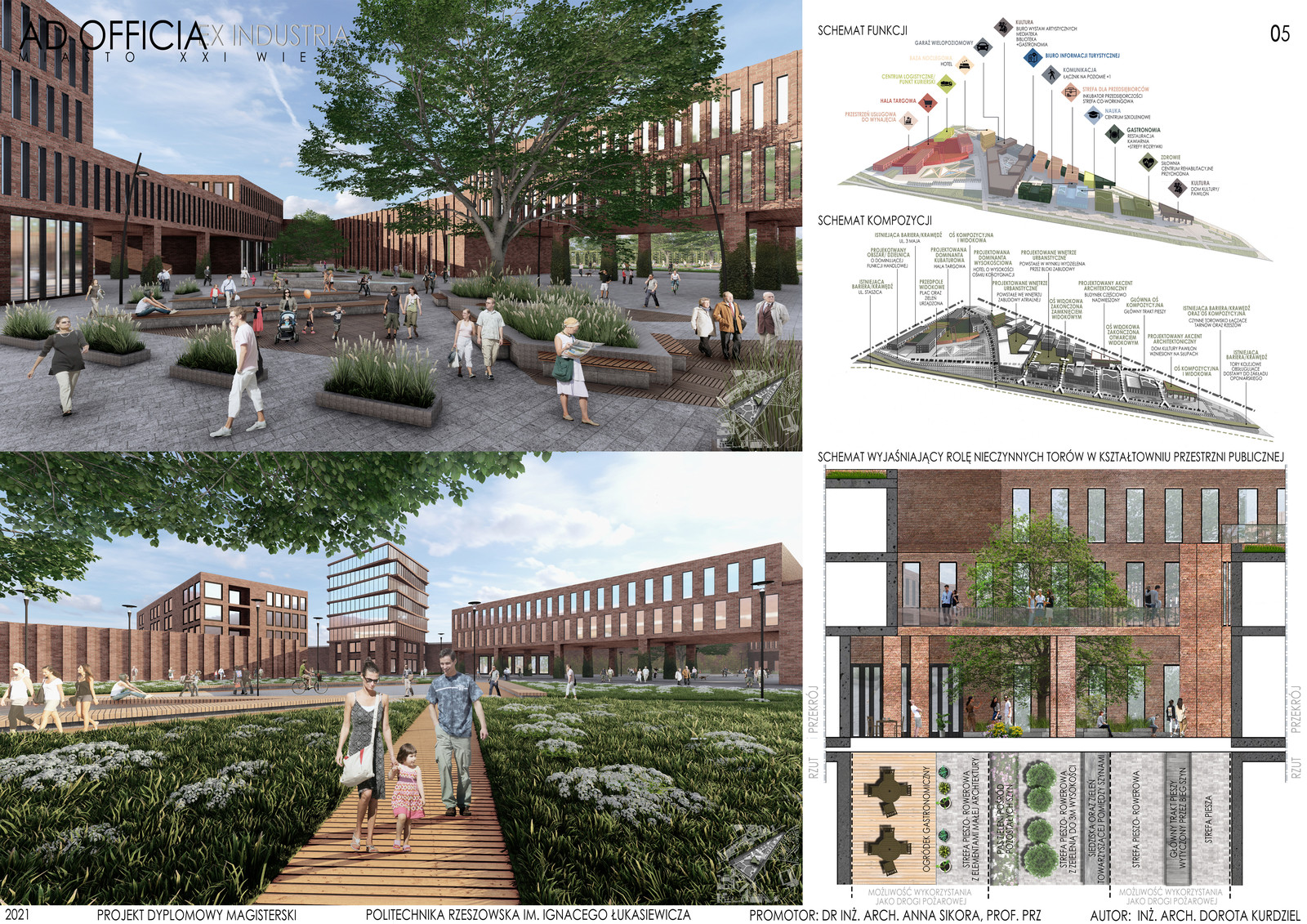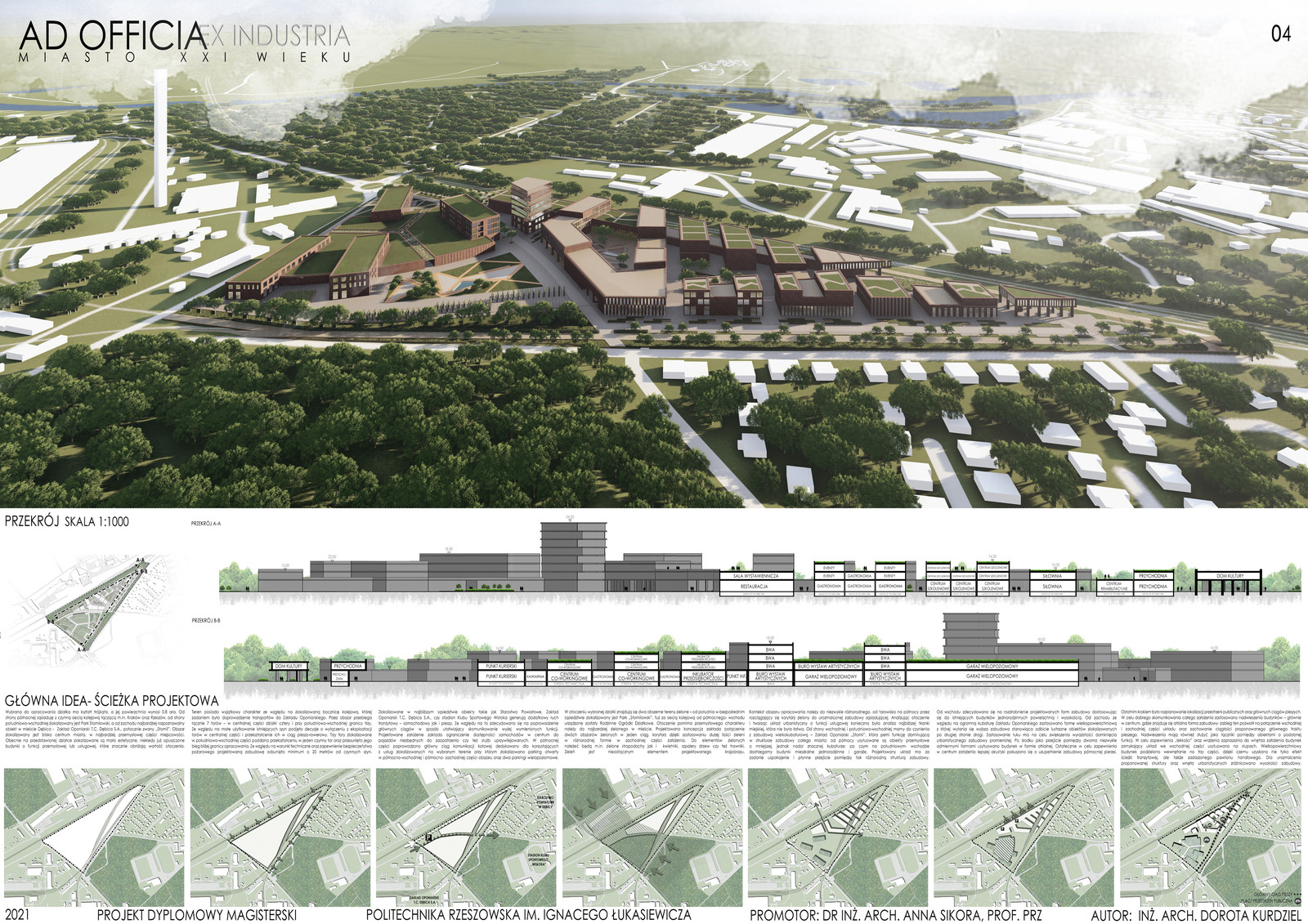 Praca pod tytułem "Ad officia ex industria- miasto XXI wieku" została wykonana pod opieką dr inż. arch. Anny Sikory, prof. PRz.