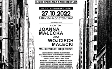 Gośćmi najbliższego spotkania (27.10.2022 godz. 18:00) w ramach ArchiCZWARTKU - cyklicznego spotkania z gwiazdami architektury będą Joanna i Wojciech Małeccy. Utytułowane biuro projektowe z Katowic.
