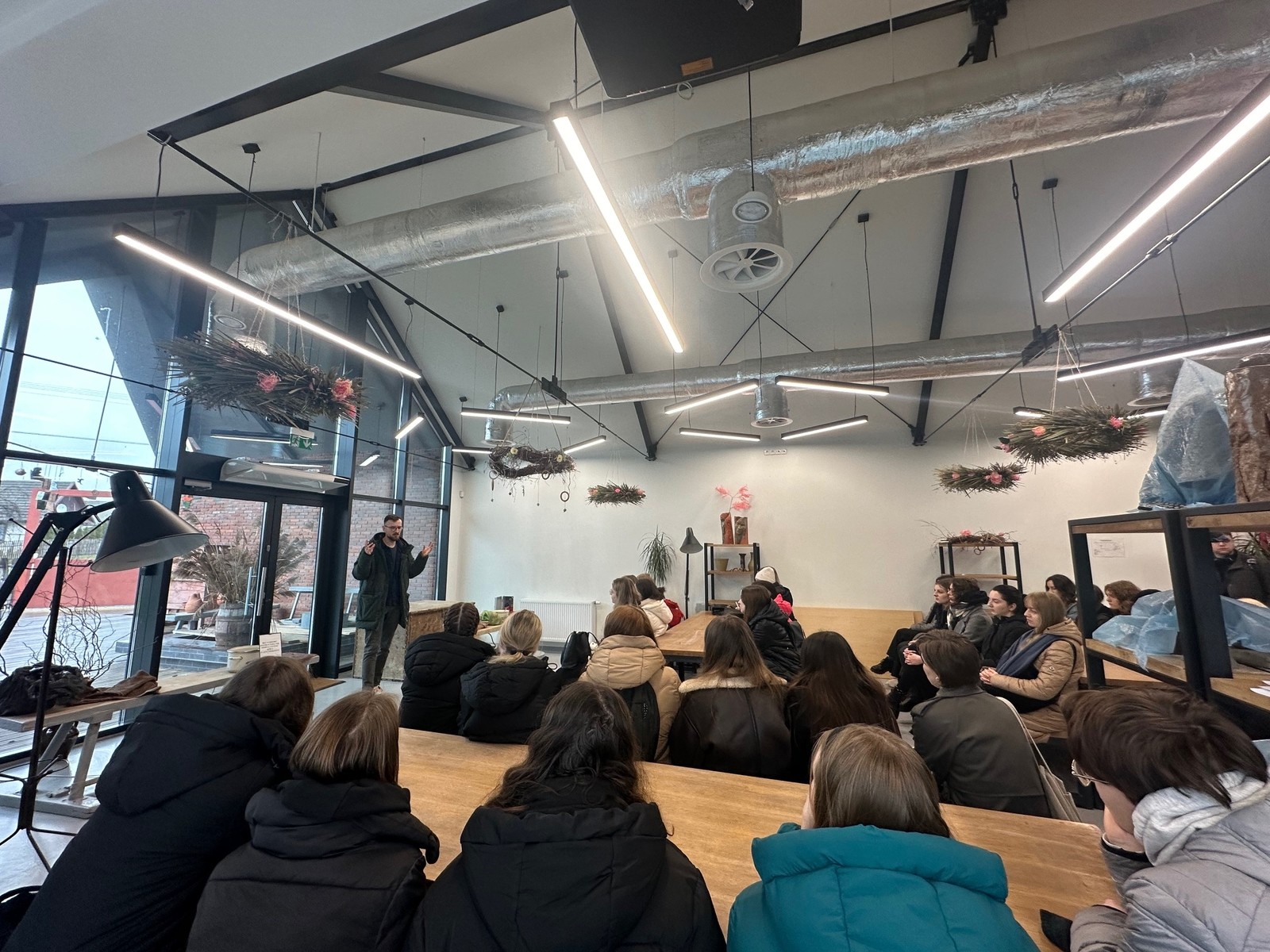 Po przybyciu do ośrodka garncarskiego, studenci mieli okazję uczestniczyć w rozmowach z specjalistami od ceramiki, zgłębiając proces produkcji oraz różnorodność rodzajów ceramiki. Następnie zwiedzili cały Ośrodek Garncarski, inspirując się jego architekturą, funkcjonalnością i atmosferą, co dodatkowo wzbogaciło ich doświadczenie oraz perspektywę projektową.