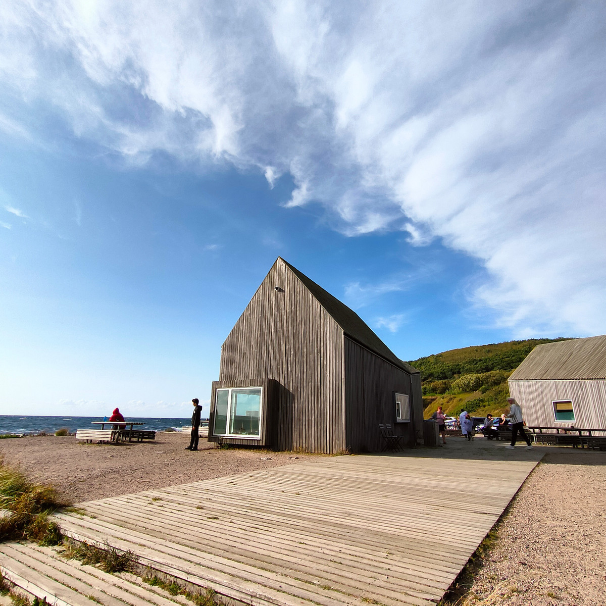 Opis do zdjęcia: Zdjęcie przedstawia jeden z budynków tworzących ogólnodostępny kompleks pawilonów, w którym mieści się m. in. miejsce odpoczynku dla turystów, baza ratunkowa oraz kawiarnia.